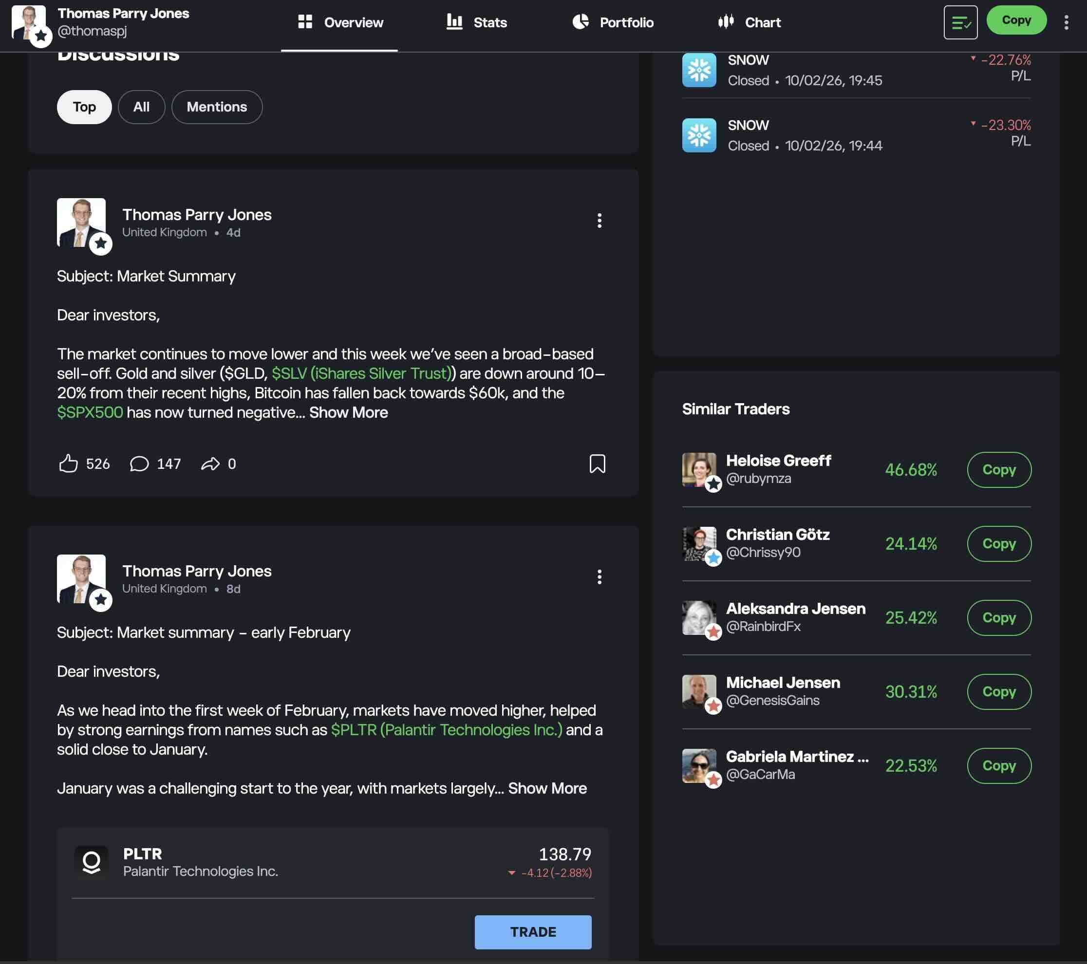 Chaque trader dispose d’un espace de discussion depuis lequel il peut publier des analyses, des idées ou du contenu informatif. Nous vous conseillons de suivre un trader qui a pour habitude de communiquer régulièrement avec sa communauté.