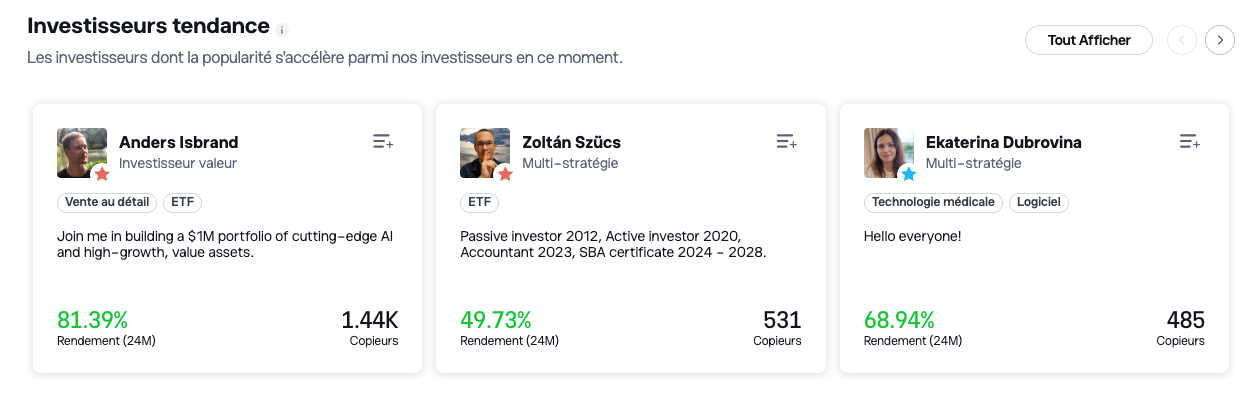 - Les traders axés sur les ETF : ces traders sont spécialisés dans les ETF et sont les plus performants de la plateforme ;